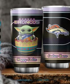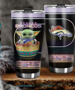 Denver Broncos NFL Baby Yoda Happy Easter Custom Name Tumblers Cup