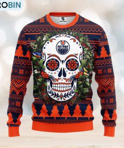 Edmonton Oilers Skull Flower Ugly Christmas Ugly Sweater details