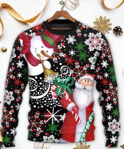 Christmas Snowyday With Santa And Snowman Christmas Ugly Sweater, Sweatshirt