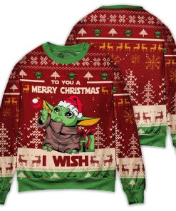 Get into the festive spirit this holiday season with the Christmas Star Wars Baby Yoda Merry Christmas Ugly Sweater Sweatshirt. This unique sweatshirt combines the beloved Star Wars franchise, the adorable Baby Yoda character, and the cheer of Christmas all in one. The design features a cozy and comfortable sweatshirt adorned with a fun and festive pattern, perfect for those ugly sweater parties or simply spreading holiday cheer. The sweatshirt is a must-have for any Star Wars fan or anyone looking to add some holiday fun to their wardrobe. It’s the perfect way to celebrate the season and show off your love for all things Star Wars and Christmas.