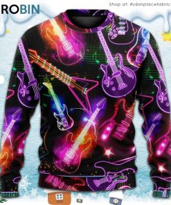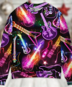 Guitar Neon Amazing Christmas Christmas Ugly Sweater, Sweatshirt details