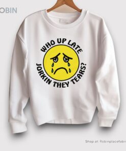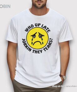 Are you a night owl who loves a good laugh? Look no further! Our Who Up Late Jorkin They Tears Shirt is guaranteed to bring a smile to your face during those late-night hours. With a fun and quirky design, this shirt is perfect for those who enjoy a good joke and don't mind burning the midnight oil. Add a bit of humor to your nighttime routine and make a statement with this unique and eye-catching shirt. Order yours today and let the laughter begin!