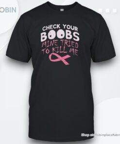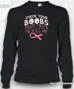 New Check Your Boobs Mine Tried To Kill Me Shirt details