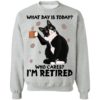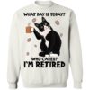 Black cat what day is today who cares i?m retired shirt.