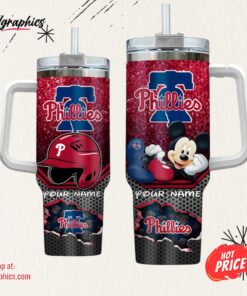 Custom Name MLB Philadelphia Phillies Mickey Mouse Tumbler 40oz With Handle