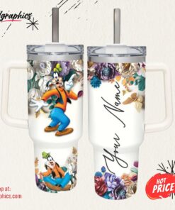Disney Custom Name Goofy 3d Colorful Flower Sublimation Pattern 40oz Tumbler