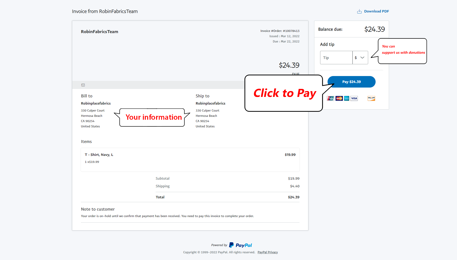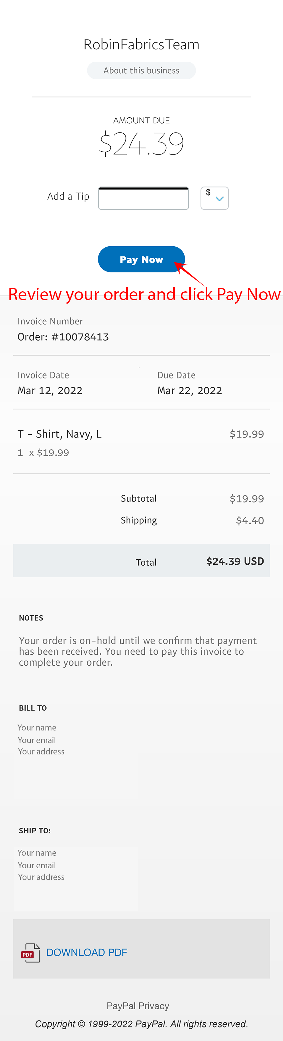1. Open email that you entered when placing an order and open invoice from Paypal.