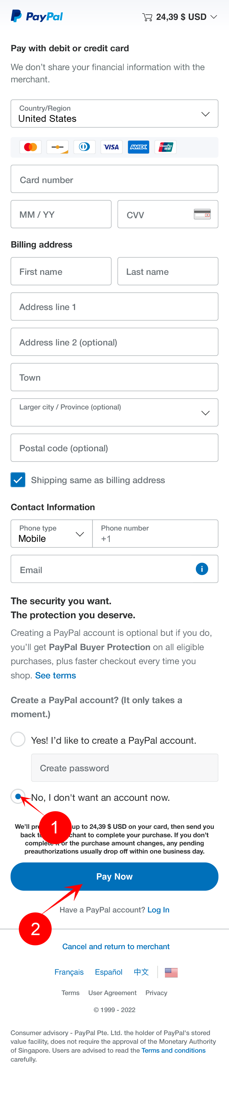 Review your order and info and click “Pay Now”