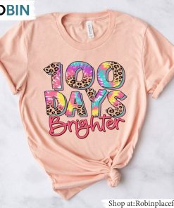 100 Days Brighter Shirt, Cute Teacher 100 Days Brighter Tee Tops Sweatshirt details