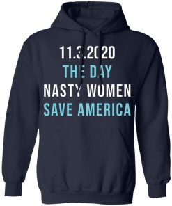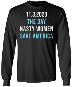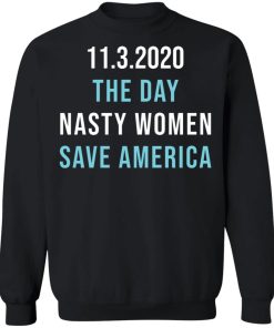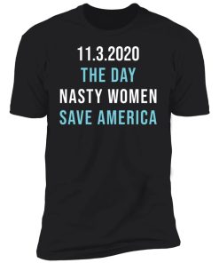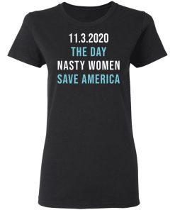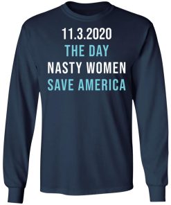 11 3 2020 The Day Nasty Women Save America Shirt. Available in t shirt, long sleeve, tank top, hoodie, sweatshirt and multiple color. If you want in another color please contact us. Quality control before delivery. Print: Digital printing, colors won’t fade or peel. The design is printed with new age printing technology. It is printed with a water – soluble and eco – friendly ink. Treat yourself, or make this shirt the perfect gift n birthdays, anniversaries, holidays, or give a gift to friend, yourself, or family, or for no reason at all.