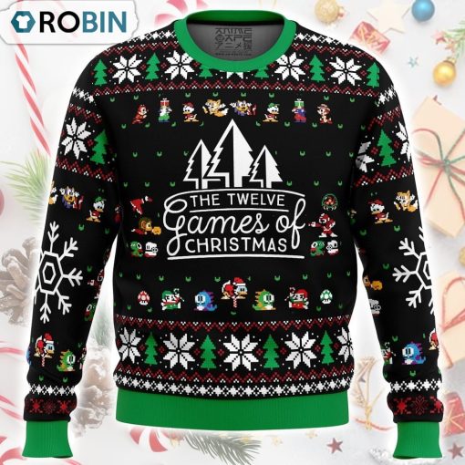 The 12 Games of Christmas Ugly Christmas Sweater is the perfect way to get into the holiday spirit while staying warm and cozy. This sweater features a festive design with all of your favorite holiday games, including Santa's Bingo, Frosty's Snowball Toss, and Rudolph's Reindeer Race. It also includes fun details like jingle bells and a light-up feature, making it a standout choice for any holiday party. With its comfortable fit and playful design, this sweater is sure to be a hit at all of your holiday gatherings.