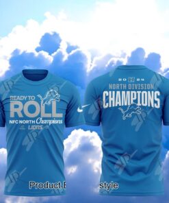 2024 NFC North Division Champions Ready To Roll Detroit Lions NFL Back To Back Shirt Blue details
