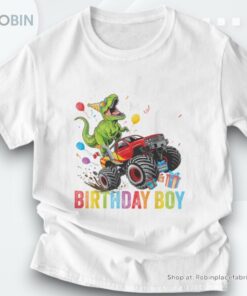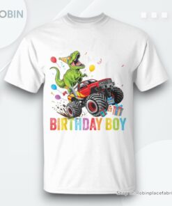 2Nd Birthday Boy Dinosaur Monster Truck Shirt
