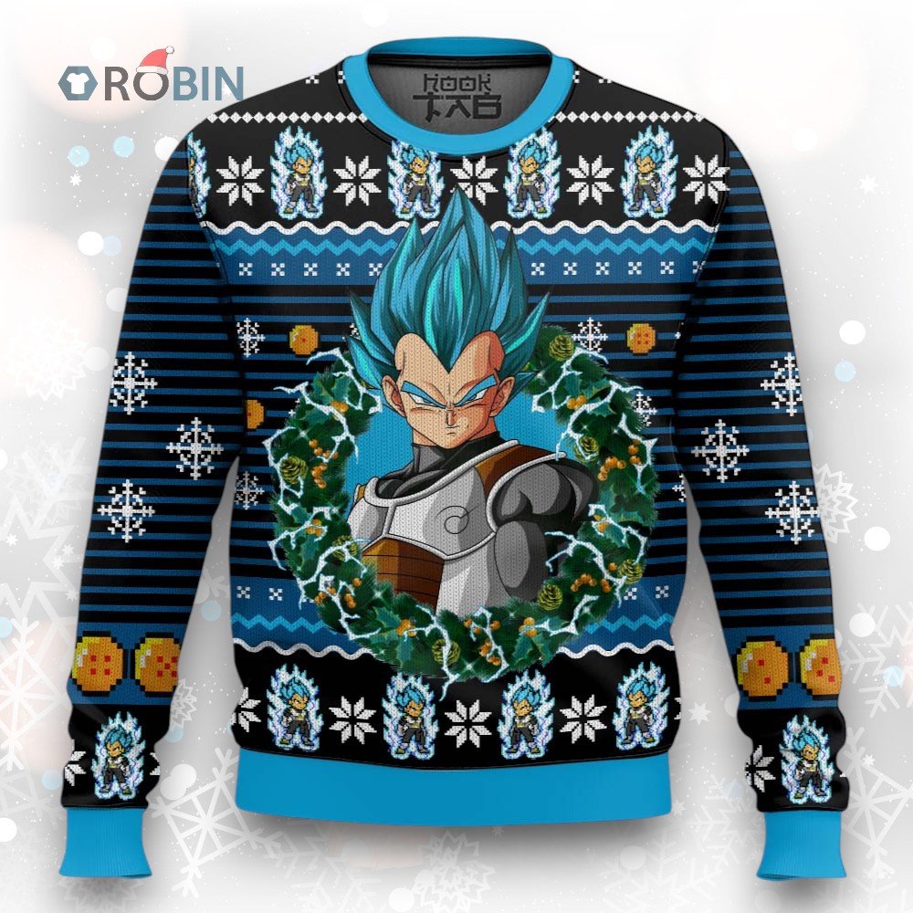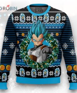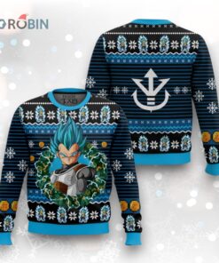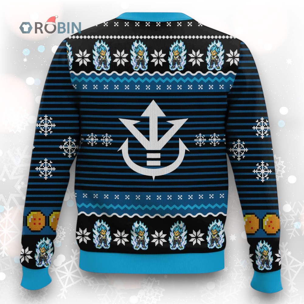 Power up your holiday style with this Saiyan Prince sweater! Rock a unique, festive look featuring Vegeta. Perfect for Dragon Ball Z fans who want to unleash their inner Super Saiyan this Christmas. Get yours now!