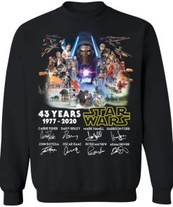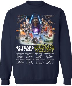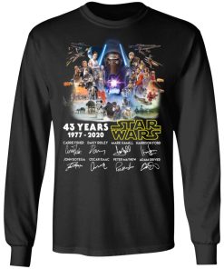 43 Years Of Star Wars 1977 2020 Signatures shirts. Available in t shirt, long sleeve, tank top, hoodie, sweatshirt and multiple color. If you want in another color please contact us.