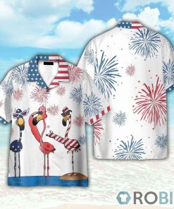 4th July America Independence Day Flamingo Hawaiian Shirt features