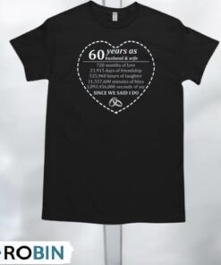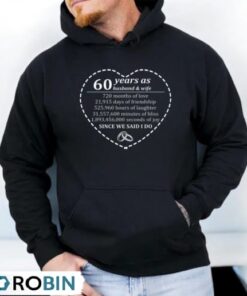 Celebrate a timeless love story with a garment that truly echoes the beauty of a six-decade journey together. This beautifully crafted piece not only serves as a wardrobe staple but also as a heartwarming tribute to the incredible bond and cherished memories accumulated over sixty years of companionship. Gift it to honor a milestone anniversary, or wear it as a loving reminder of countless shared moments, unwavering support, and enduring affection. Elegantly designed with care, this piece perfectly captures the essence of a story still unfolding. Let it be a testament to a lifetime of love and a future of unending happiness.
