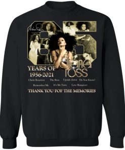 65 Years Of Diana Ross 1956 2021 Thank You For The Memories Shirt. Available in t shirt, long sleeve, tank top, hoodie, sweatshirt and multiple color. If you want in another color please contact us. Quality control before delivery. Print: Digital printing, colors won’t fade or peel. The design is printed with new age printing technology. It is printed with a water – soluble and eco – friendly ink. Treat yourself, or make this shirt the perfect gift n birthdays, anniversaries, holidays, or give a gift to friend, yourself, or family, or for no reason at all.