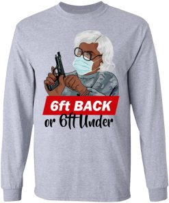 6ft Back Or 6ft Under Mask Gun shirt. Available in t shirt, long sleeve, tank top, hoodie, sweatshirt and multiple color. If you want in another color please contact us. Quality control before delivery. Print: Digital printing, colors won’t fade or peel. The design is printed with new age printing technology. It is printed with a water – soluble and eco – friendly ink. Treat yourself, or make this shirt the perfect gift on birthdays, anniversaries, holidays, or give a gift to friend, yourself, or family, or for no reason at all.