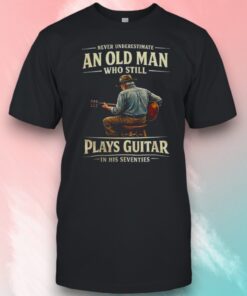 70th Birthday Never Underestimate An Old Man Who Still Plays Guitar In His Seventies Shirt