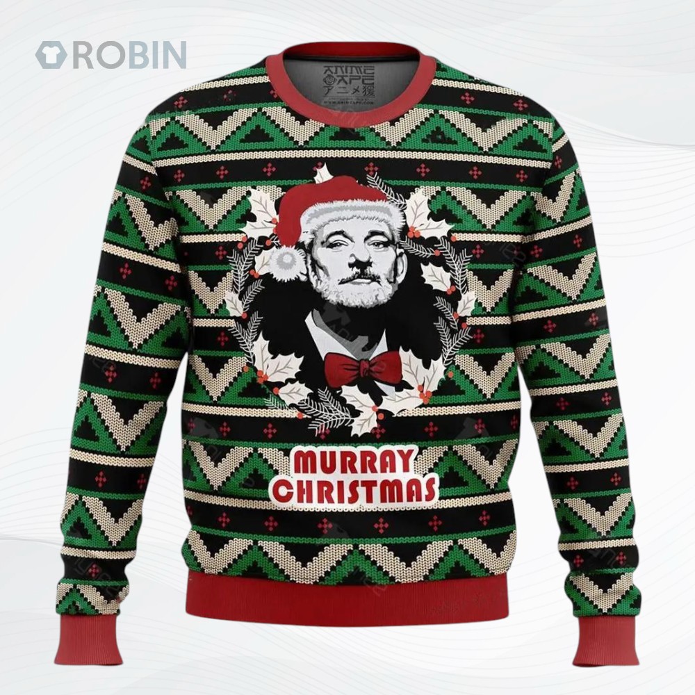 Get ready to spread some holiday cheer with this Bill Murray-themed Christmas Sweater! Featuring iconic Murray moments, it's the perfect conversation starter for any festive gathering. Embrace the ugly sweater tradition with a touch of comedic genius. Limited quantities available, so grab yours before they're gone!