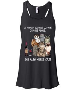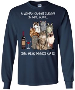 A woman cannot survive on wine alone she also needs a cats t shirt, tank, ls