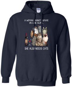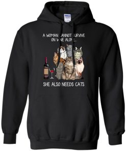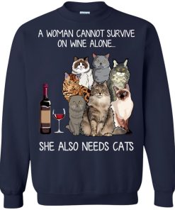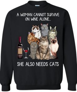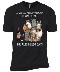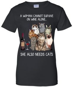 A woman cannot survive on wine alone she also needs a cats t shirt, tank, ls, hoodie, sweatshirt