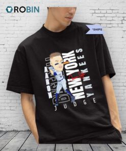 Rep your love for the Yankees with this unique caricature signature shirt! Show your support for the team and your favorite player. A must-have for any true fan. Grab this limited-edition piece of yankees merch and sport your pride!