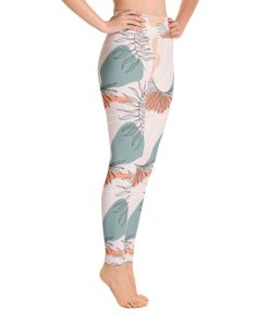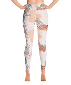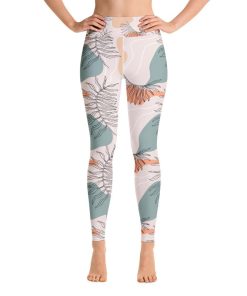 Abstract Leaves Pattern Yoga Leggings Women, Pastel Art High Waisted Pants