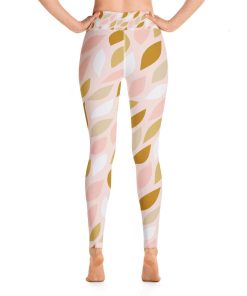 Abstract Leaves Pink Yoga Leggings Women, High Waisted Pants