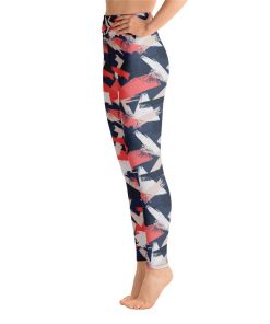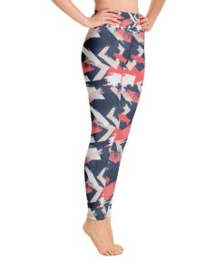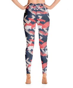 Abstract Pattern Yoga Leggings Women, Blue Red High Waisted Pants