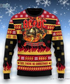 ACDC Band Jingle Hells Bells Let There Be Christmas Ugly Sweater and Sweatshirt details