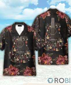 Acoustic Guitar Tropical Flowers Hawaiian Shirt features