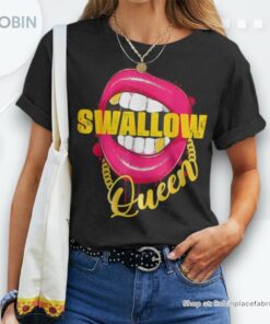 Adult Humor Swallow Queen Lips Golden Necklace Naughty Queen Unisex Shirt
