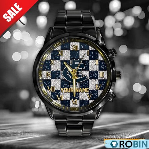 The stainless steel watch featuring the emblem of the Carlton Football Club is a must-have accessory for die-hard fans of the team. Its sleek design and durable construction make it both stylish and functional. The watch is suitable for everyday wear and is a perfect way to show support for the club. With its high-quality materials and precision timekeeping, this watch is a symbol of loyalty to the Carlton Football Club.