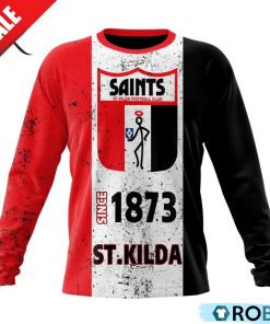 The St Kilda Football Club, based in Melbourne, Australia, boasts a rich history and a fiercely loyal fanbase. The retro heritage design of this hoodie pays homage to the club’s storied past, featuring classic colors and emblems that evoke nostalgia for long-time supporters. This garment is a must-have for any Saints fan looking to showcase their pride in style. The cozy hoodie is perfect for keeping warm at games or showing team spirit while out and about. Its unique design sets it apart from typical team merchandise, making it a standout piece in any fan’s wardrobe. Whether worn on game day or as everyday casual wear, this hoodie is sure to make a statement and spark conversations among fellow St Kilda enthusiasts.