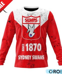 The AFL Sydney Swans Special Retro Heritage Design Hoodie is a stylish and nostalgic piece of fan merchandise that pays homage to the rich history of the Sydney Swans football club. The hoodie features a unique design that combines retro elements with modern aesthetics, making it a great choice for fans looking to show their support in a fashionable way. With its comfortable fit and quality materials, this hoodie is sure to be a hit among Swans supporters both young and old.