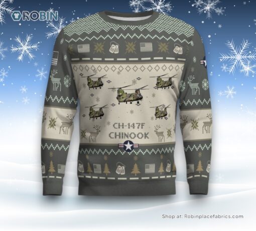 Air Force Ugly Christmas Sweater, CH 147F Chinook CH147F Aircraft Ugly Christmas Sweater details