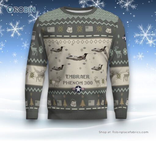 Air Force Ugly Christmas Sweatshirt, Sweater, Embraer Phenom 300 Aircraft Ugly Christmas Sweatshirt, Sweater details