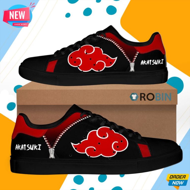 Akatsuki Cloud Skate Shoes Black Naruto Anime Custom Sneaker.