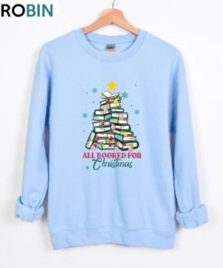 All Booked For Christmas Sweatshirt, Librarian Bookworm Xmas Sweater, Long Sleeve Cotton, Hoodie details