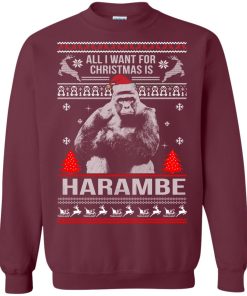 All I Want For Christmas Is Harambe Sweater, Long Sleeve, Hoodie