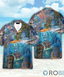 Aloha Summer Tiki Island Hawaiian Shirt features