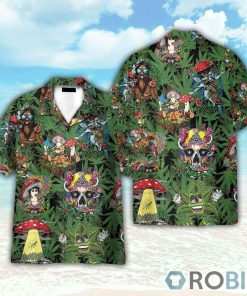 Amazing Hippie Mushroom And Green Weed Hawaiian Shirt features