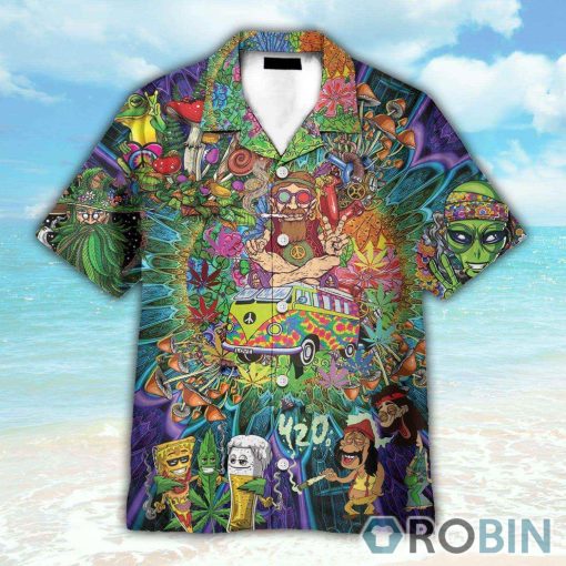 Amazing Hippie Weed And Mushroom Hawaiian Shirt features