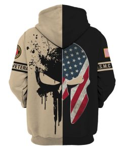 American Flag Spartan Helmet Punisher Skull Us Marine Corps Veteran 3d Hoodie, T-shirt