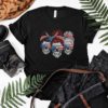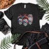 American Women USA Flag Messy Bun Skull Mom 4th Of July Shirt