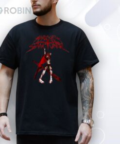 Discover a bold statement in alternative fashion. The striking red skull design merges with an edgy figure poised in defiance, embodying a powerful message of rebellion. Perfect for those who challenge the norm, this design speaks volumes.