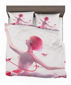 Anime Girl Ballet Dancer Fishes Pink Koi Bedding Set – duvet cover and pillow case.