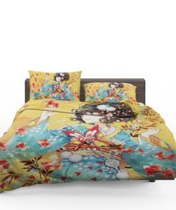 Anime Girl Fishes Japanese Bedding Set – duvet cover and pillow case.